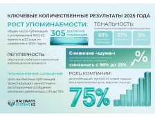 В 2024 году в холдинге «Railways Systems KZ» (железнодорожное машиностроение) отсутствовала системная функция по связям с общественностью. С января 2025 года была создана новая структура — Департамент внешних коммуникаций. За отчётный период команда с нуля сформировала коммуникационную стратегию до 2027 года, внедрила системный медиаменеджмент и собственную систему оценки эффективности PR. Результатом стал переход от стихийного и фонового присутствия в медиа к формированию осознанного отраслевого инфополя: рост числа публикаций в 3,7 раза и увеличение доли контекстных упоминаний с ключевыми сообщениями компании с 2% до 75%.