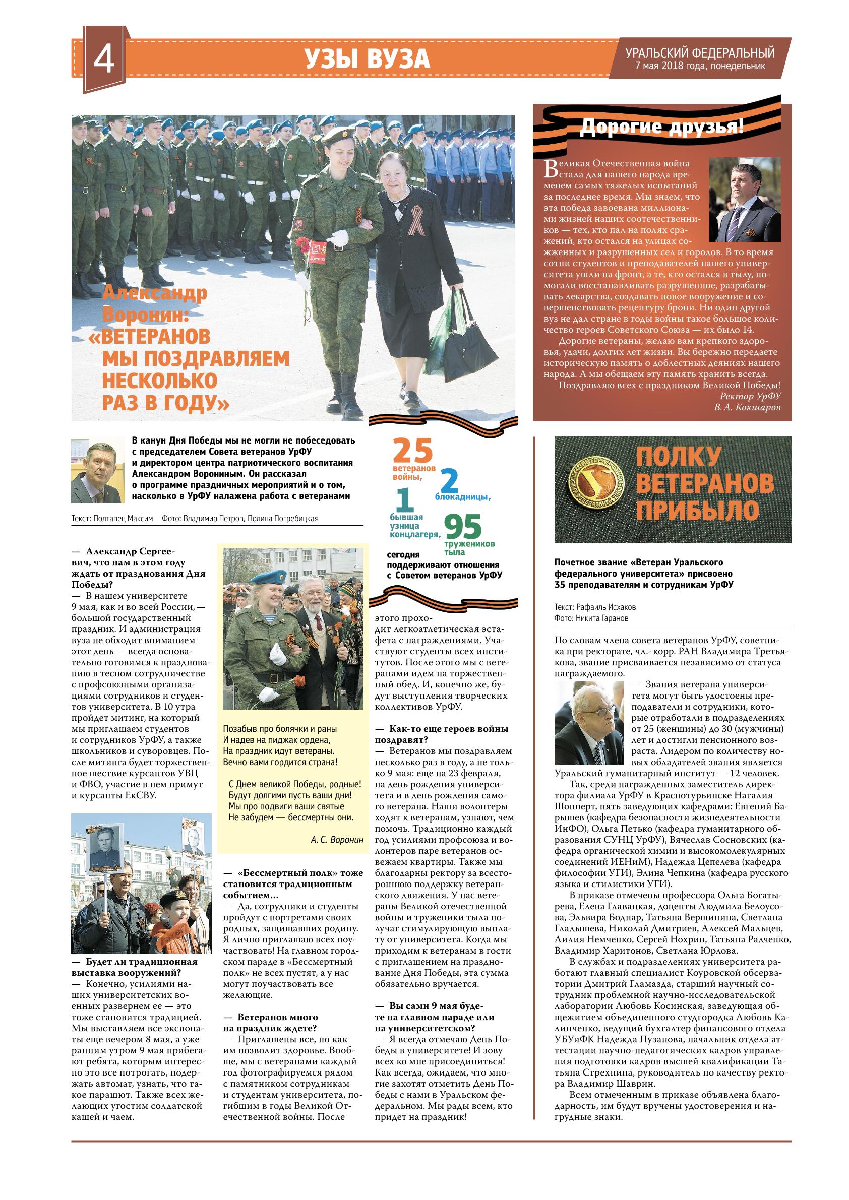 - Планета УрФУ — рубрика, в которой публикуются фотофакт с одного из событий, анонсы грядущих мероприятий, а также вакансии для соискателей на должности профессорско-преподавательского состава.
