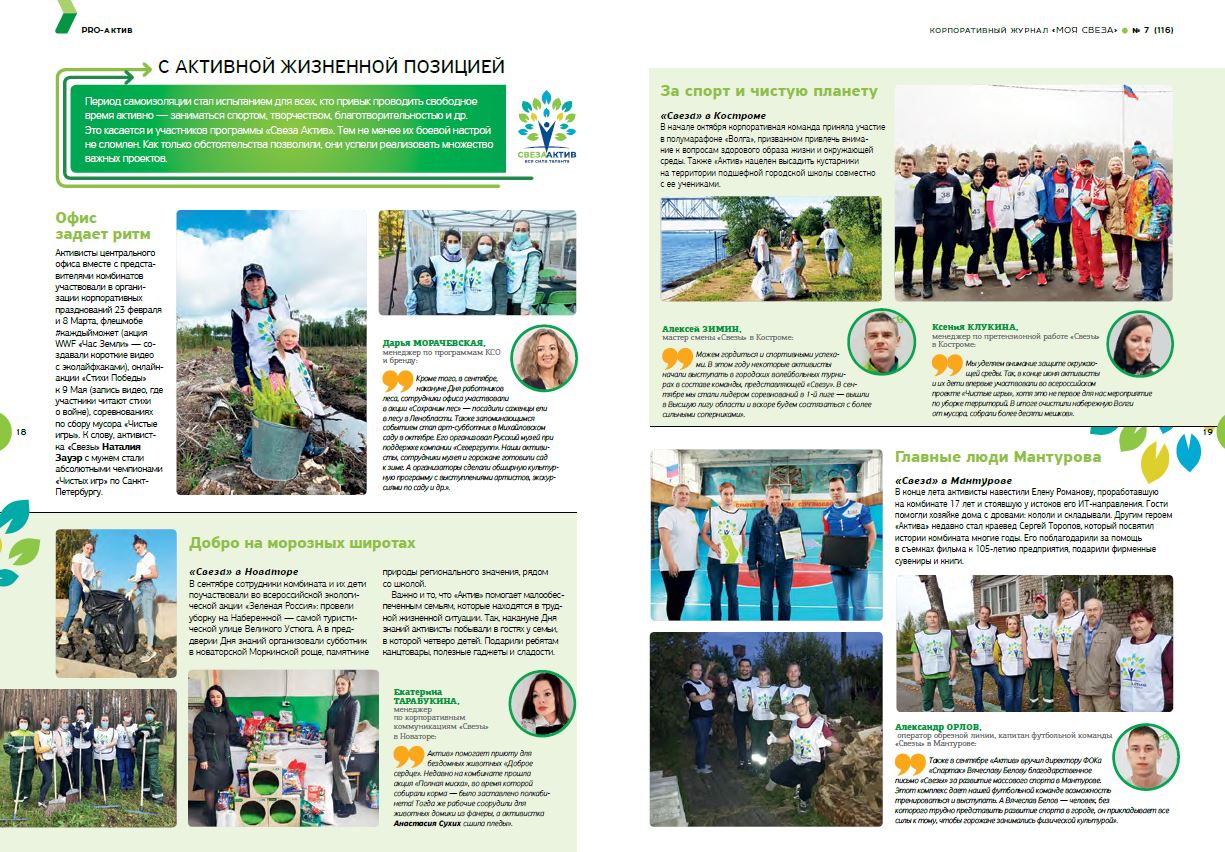 Основная идея программы «Свеза Актив» – объединить наиболее активных и вовлеченных сотрудников «Свезы» в центральном офисе и на всех комбинатах с целью поддержки внутренних и внешних проектов и инициатив компании.