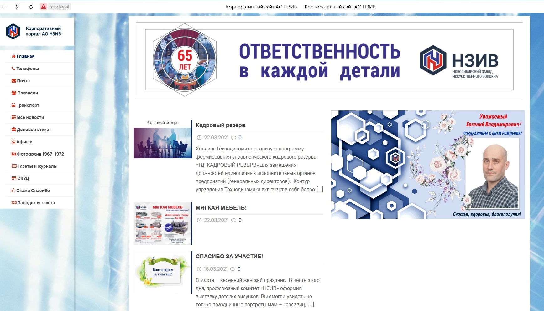 Локальный корпоративный сайт АО "НЗИВ"