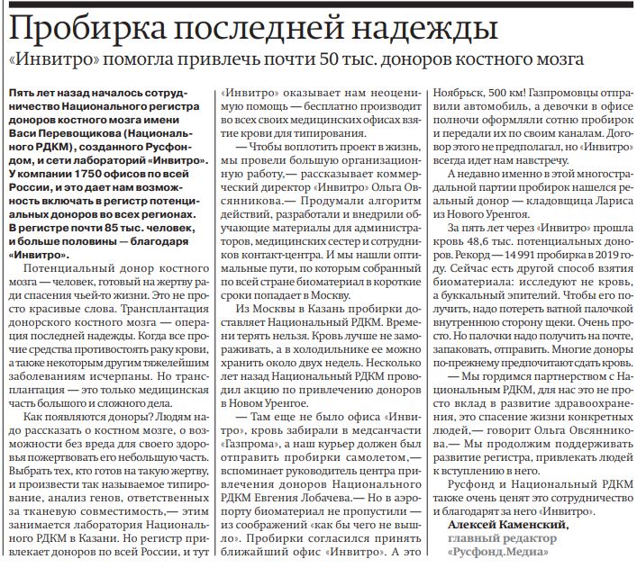 Продвижение сотрудничества ИНВИТРО и Национального регистра доноров костного мозга им. Васи Перевощикова.Привлечение людей в реестр доноров костного мозга