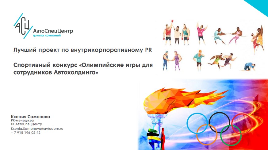 Проект Олимпийские игры Автохолдинга стал ярким примером того, как внутренние коммуникации и корпоративные мероприятия создают дружественную атмосферу в компании, повышают лояльность сотрудников и расширяют сообщество единомышленников, а также обеспечивают дополнительные информационные поводы и укрепляют имидж компании на рынке труда.