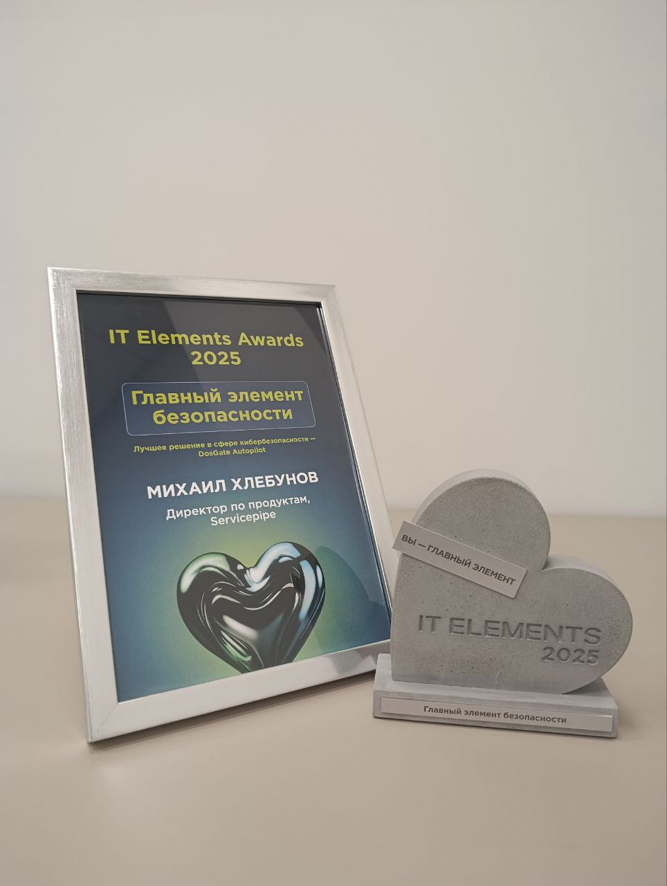10 сентября DosGate Autopilot и руководитель продукта Михаил Хлебунов получают отраслевую премию IT Elements Awards в номинации «Главный элемент безопасности».