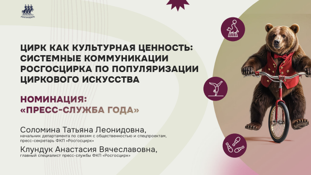 Автор(ы): Татьяна Леонидовна Соломина, пресс-секретарь Российской государственной цирковой компании , Клундук Анастасия Вячеславовна, главный специалист пресс-службы