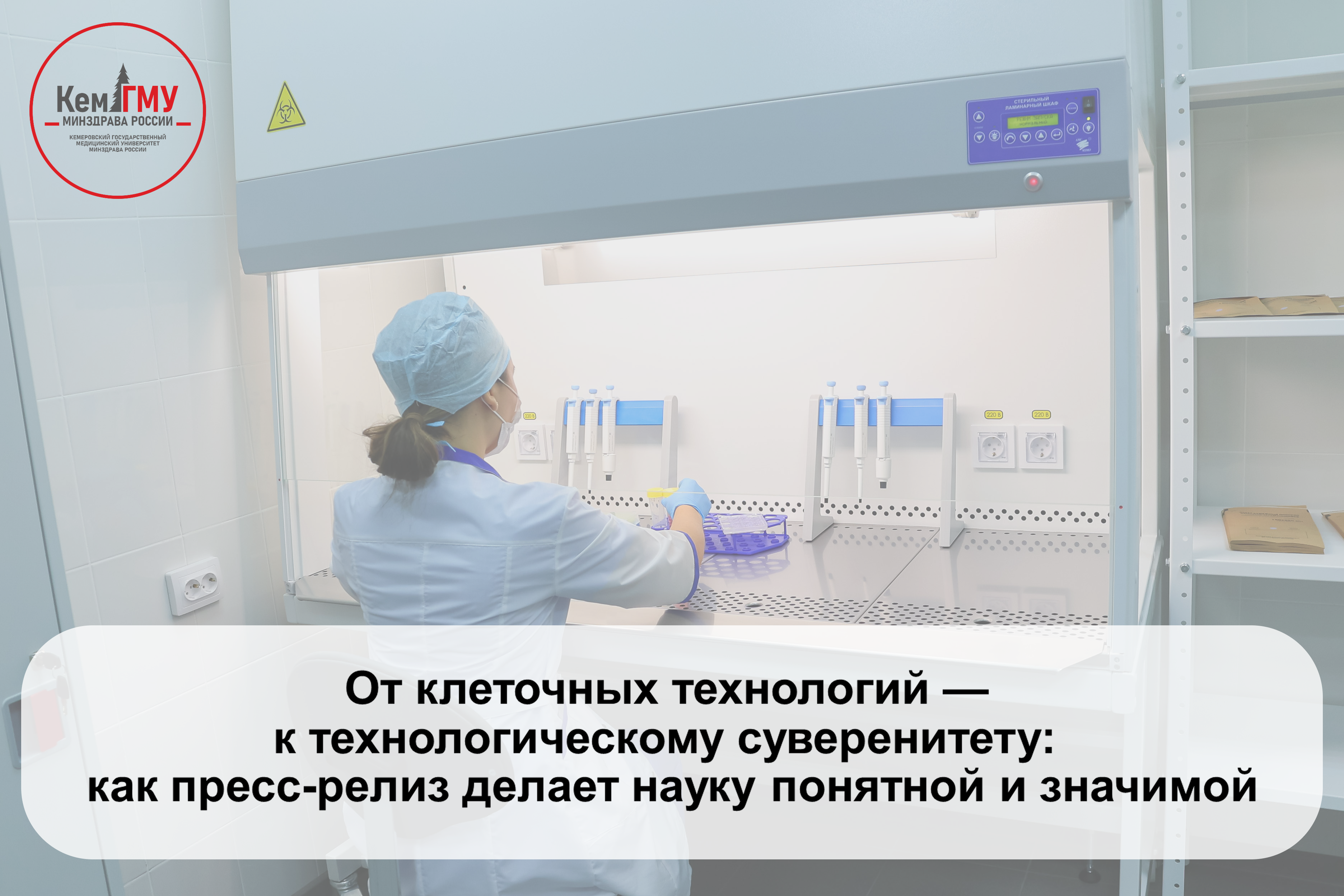 Пресс-релиз посвящен открытию лаборатории тканевого гомеостаза и клеточных технологий в КемГМУ Минздрава России, говоря о том, что позволяет производить исследования на самом передовом – клеточном – уровне.