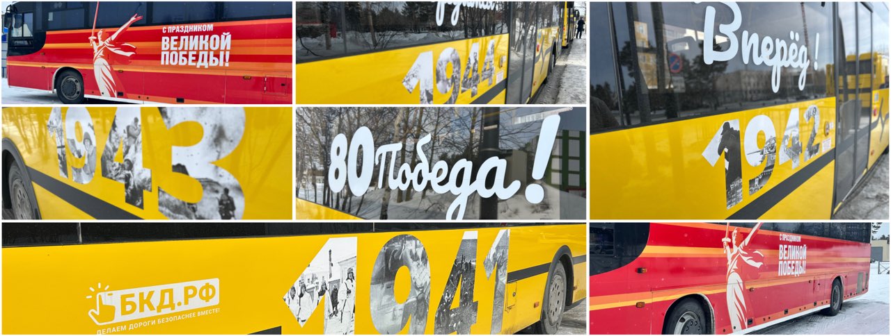 5 городских автобусов - 1941, 1942, 1943, 1944 и 1945. Внутри и снаружи автобусов представлена информация о значимых операциях или сражениях, происходивших в тот год.В автобусах проекта, можно посмотреть агитплакаты каждого года, увидеть цитаты полководцев ВОВ на поручнях и услышать их в аудиоинформаторе. В военных автобусах находится кр код с возможностью скачивания интерактивных выставок от московского Музея Победы.
