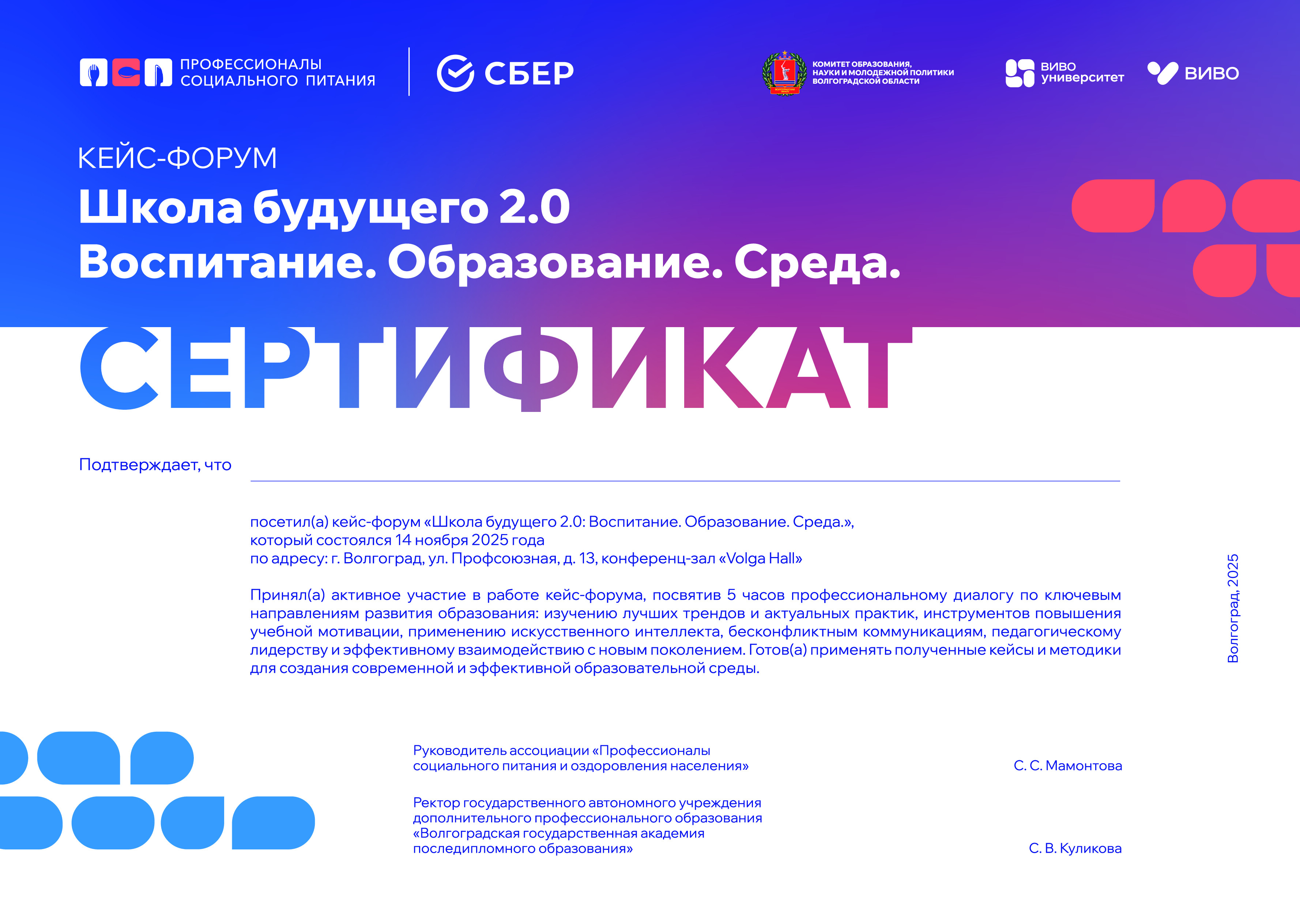 Один из ведущих операторов социального питания и производителей готовой продукции Южного Федерального округа компания “Виво Маркет” два года подряд входит в число организаторов кейс-форума для педагогического сообщества г. Волгограда и Волгоградской области.