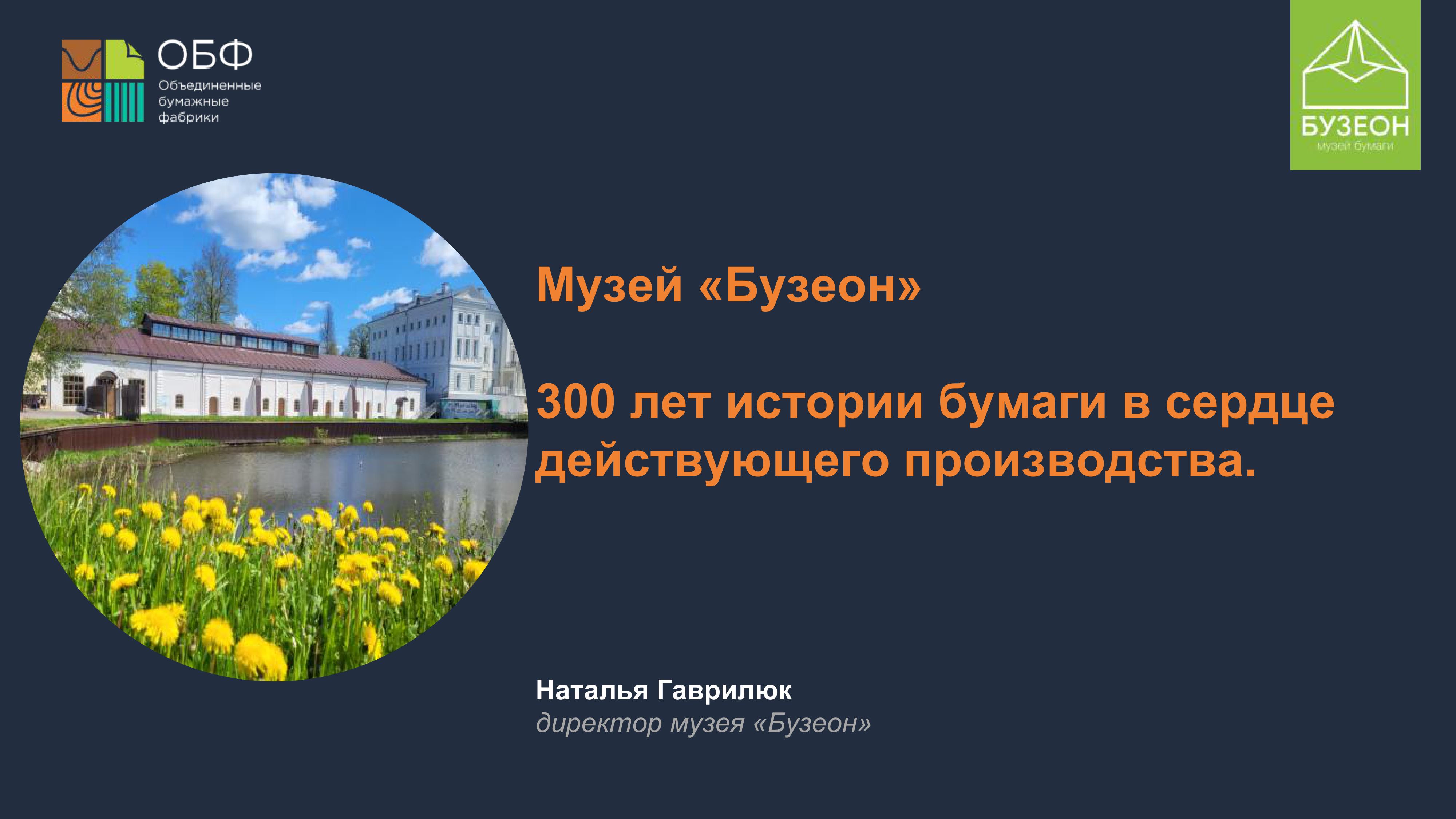 Автор(ы): Дулькин Дмитрий Александрович, управляющий партнер Компании «Объединенные бумажные фабрики» , Гаврилюк Наталия, директор музея «Бузеон» , Светлана Александровна Никольская, генеральный директор ООО "ПЗБМ"