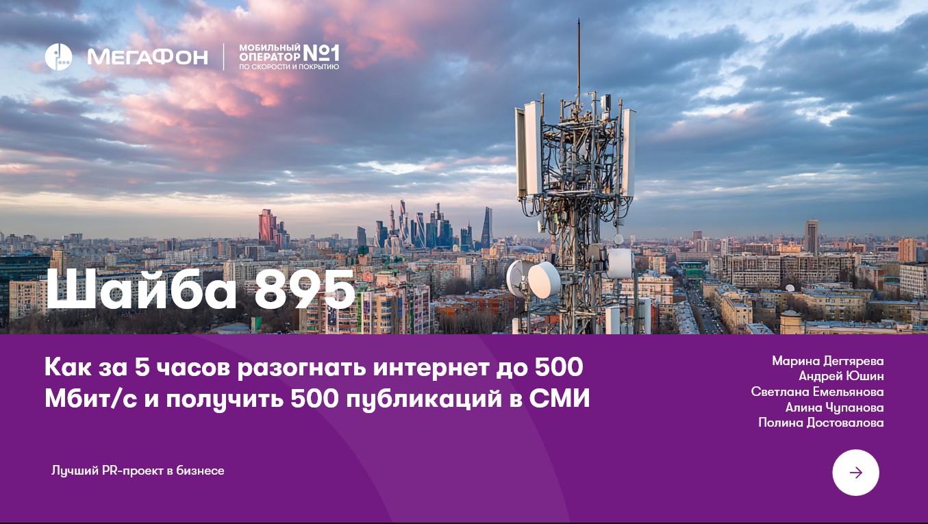 В знак солидарности к единению клиентов, а также в честь признания заслуг великого хоккеиста МегаФон вписал рекорд в историю телекома и запустил базовую станцию «Шайба 895». В результате проекта вышло свыше 470 публикаций в СМИ, охват аудитории составил почти 9 миллионов.