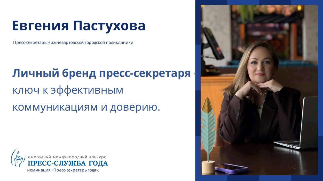 Результат: Сформирована устойчивая репутация Нижневартовской городской поликлиники как открытого, технологичного и человечного учреждения. Личный бренд пресс-секретаря стал драйвером этой репутации, что подтверждено международными наградами («Пресс-служба года-2024»), победами в премии «Служение» и статусом лидера общественного мнения в медиасфере Югры.