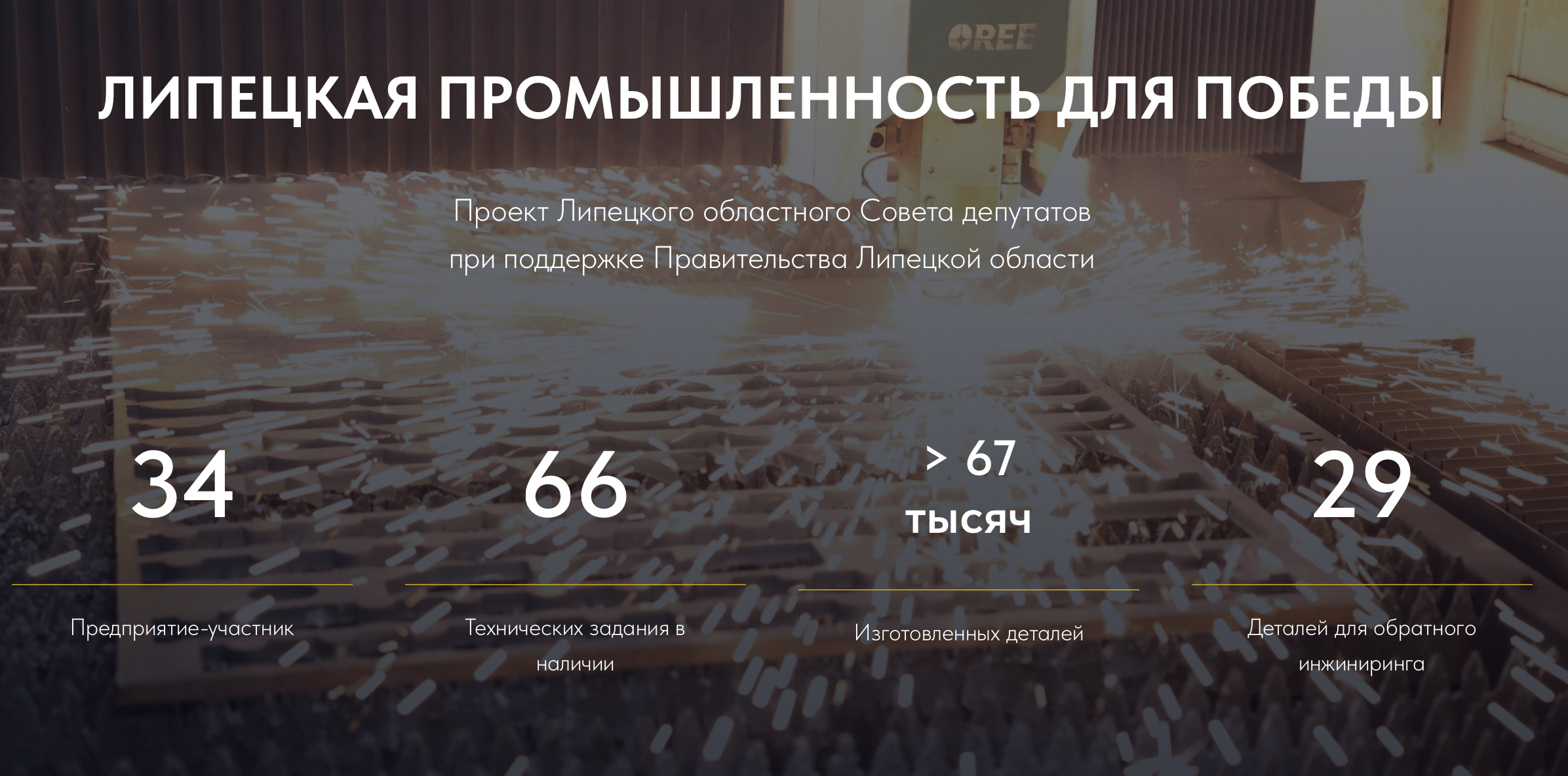 Проект Липецкая промышленность для Победы предназначен для того, чтобы стать связующим звеном между бизнесом, бойцами и конструкторами. Главная цель – помощь нашим военнослужащим на фронте. Главная информационная цель - увеличить охваты и собрать единомышленников для помощи нашим солдатам.