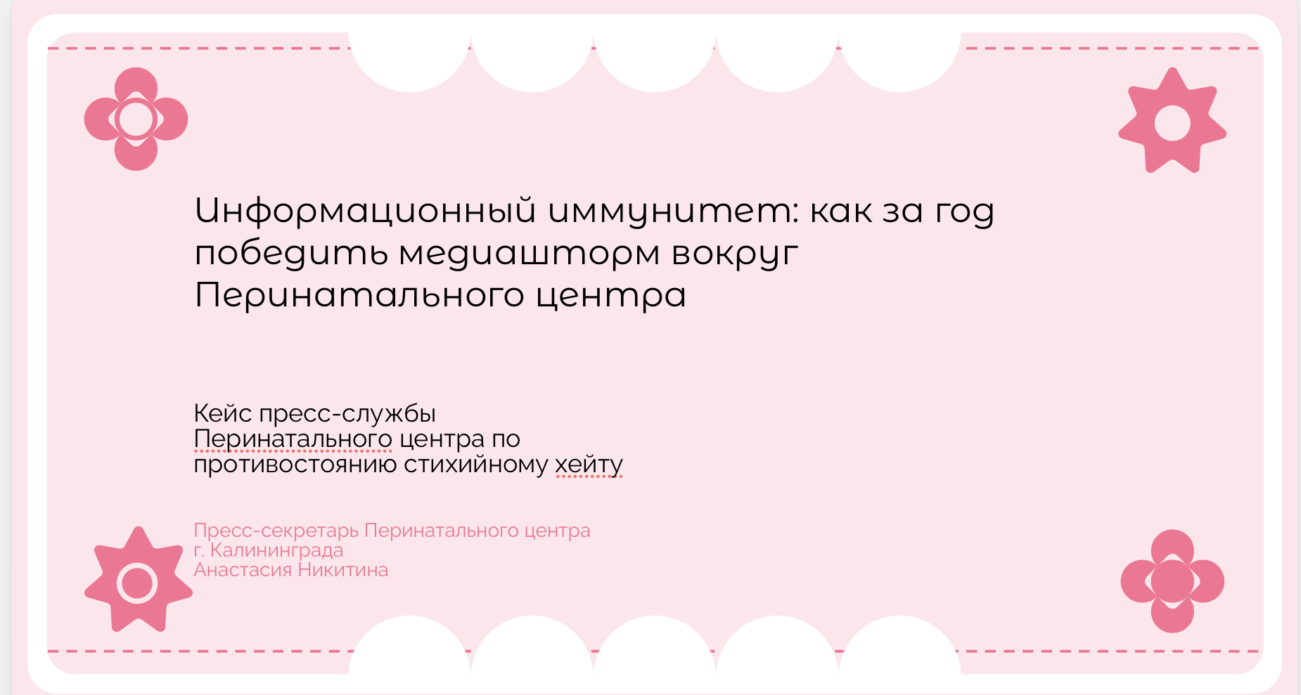 Автор(ы): Никитина Анастасия Юрьевна, Пресс-секретарь Перинатального центра г. Калининграда