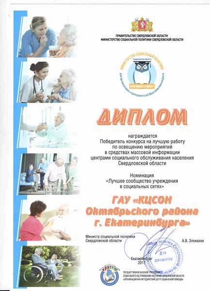 За 2017 год страница в социальной сети набрала 18935 просмотров, 166 записей получили 467 отметок "нравится".В Екатеринбурге страница ГАУ "КЦСОН Октябрьского района г. Екатеринбурга" занимает 1 место по численности подписчиков среди социальных учреждений города. Наше сообщество стало победителем в номинации "Лучшее сообщество учреждения в социальных сетях" в рамках Конкурса на лучшую работу по освещению мероприятий в СМИ центрами социального обслуживания населения Свердловской области.