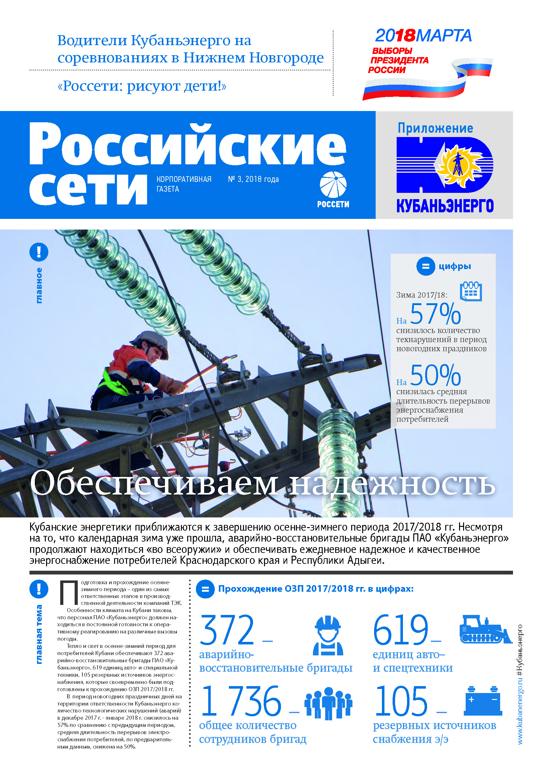 В течение 2018 года было выпущено 12 выпусков корпоративного издания (включая 1 спецвыпуск). Газета распространялась по всем филиалам Кубаньэнерго на территории Краснодарского края и Республики Адыгея. Электронная версия всех выпусков газеты размещена на официальном сайте Кубаньэнерго.Результатом проекта стало выполнение всех поставленных целей - периодический ежемесячный выпуск газеты, донесение информации до сотрудников компании, а также вовлечение их в корпоративную культуру.