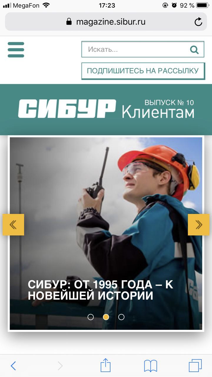 Основная цель проекта – поддержать курс на развитие клиентоориентированности в компании СИБУР, а впоследствии стать отраслевой площадкой для обсуждения изменений в отрасли. Кроме того, издание позволяет более подробно по сравнению с сайтом знакомить клиентов с новыми продуктами и информировать в удобной форме обо всех изменениях, важных непосредственно для клиентов.Результат проекта
