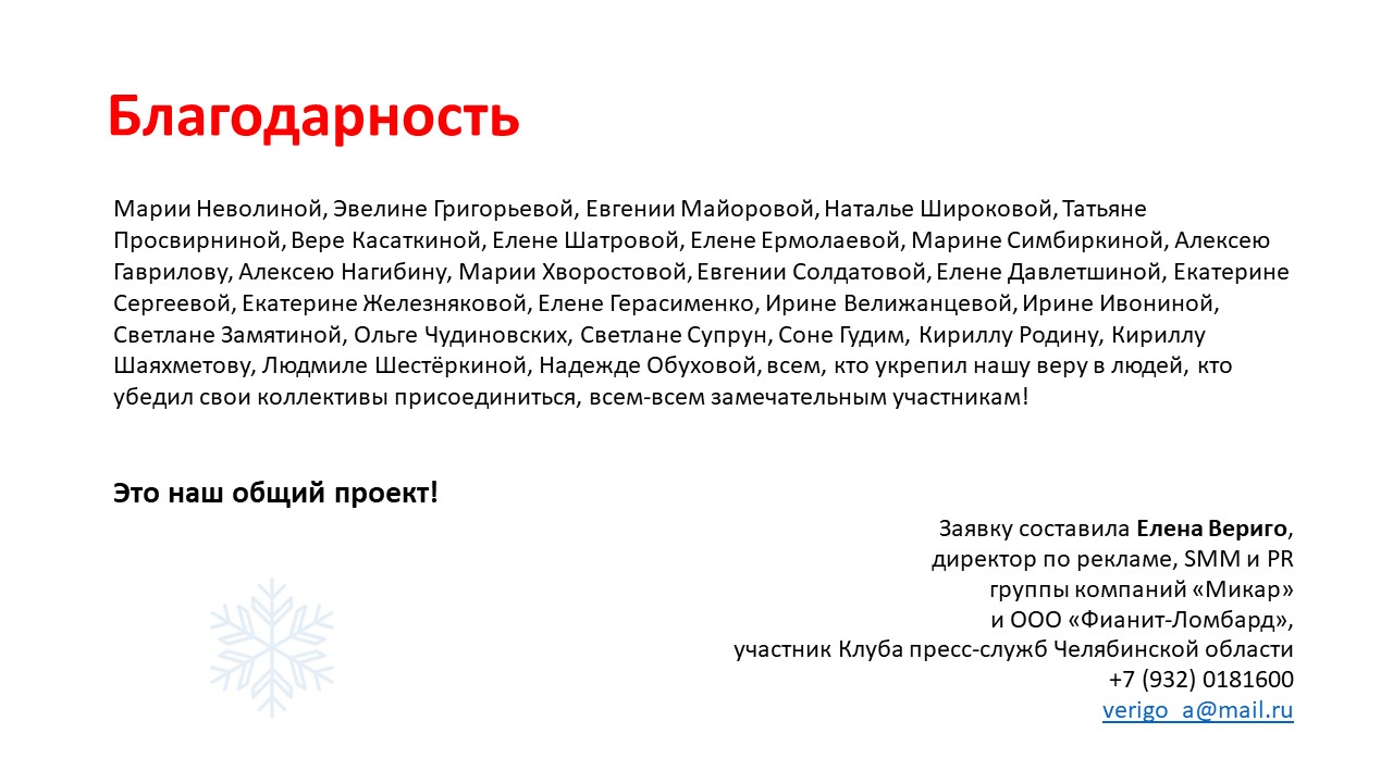 В 2019 году «Фианит-Ломбард» обратился к Клубу пресс-служб Челябинской области с предложением объединить в проекте больше компаний, распространив призыв среди участников Клуба.