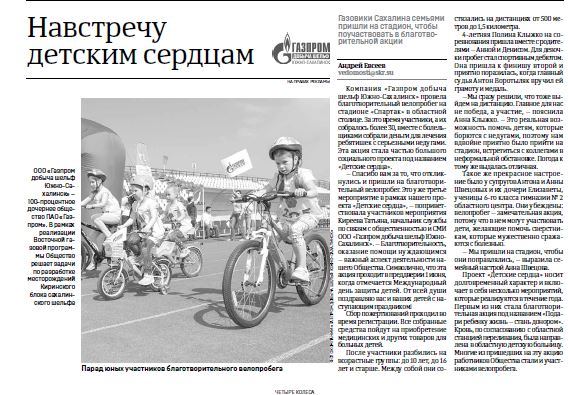 Информация о проекте размещена в СМИ: в эфир вышло 11 телесюжетов на телеканалах «Домашний» и «ОТВ-Сахалин» (эфир охвата – Сахалинская область) и более 17 публикаций . Интернет-сайты и газеты - skr.su, astv.ru, 65.media, газпромпрофсоюз.рф, портал и сайт ООО «Газпром добыча шельф Южно-Сахалинск», ПАО «Газпром», ОАУ ИД «Губернские Ведомости». Подготовлен фильм «Детские сердца».
