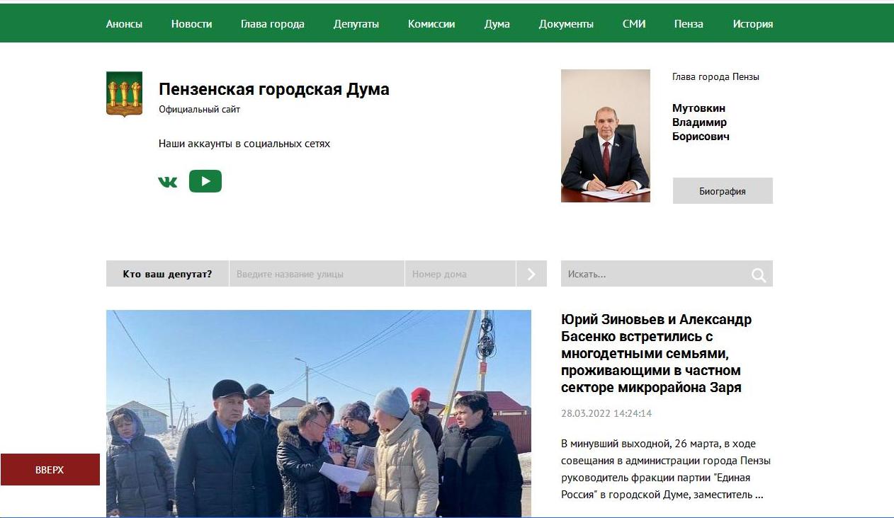 Пресс-служба Главы города Пензы ежедневно информирует пензенцев о деятельности Главы города и депутатов Пензенской городской Думы, их работе в округах и с избирателями, помощи в решении насущных проблем горожан.