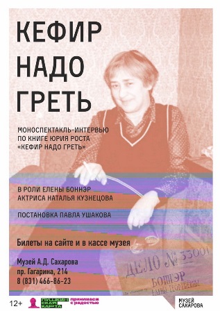 По инициативе Нижегородского музея А.Д. Сахарова для был поставлен эксклюзивный моноспектакль по книге известного журналиста, писателя и фотографа Юрия Михайловича Роста «Кефир надо греть».