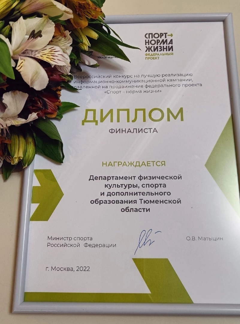 В 2022 году Тюменский регион вошел в тройку лидеров в стране за лучшую реализацию информационно-коммуникационной кампании, направленной на продвижение федерального проекта «Спорт – норма жизни";