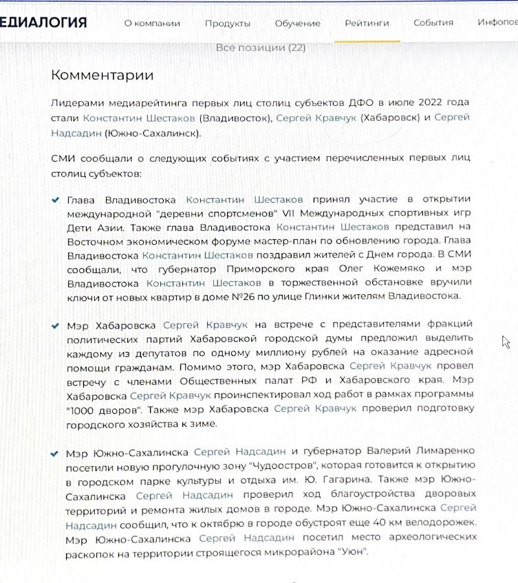 Этот материал ворвался в федеральную повестку и обеспечил мэру Южно-Сахалинска Сергею Надсадину, который сразу же прибыл на место раскопок и пообщался с археологами, лидирующие позиции в июльском рейтинге «Медиалогии» среди глав столиц дальневосточных субъектов!