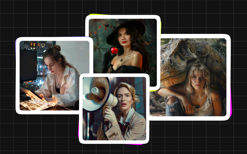 Для визуализации задействовали ИИ: фото участниц сгенерированы на основе их личных фотографий в образе «Кем я хотела быть в детстве» нейросетью Midjourney. Такая необычная креативная подача позволяет добиться визуального единообразия проекта и привлекает внимание к актуальному тренду и целому блоку IT-профессий, связанных с AI, нейросетями и машинным обучением.