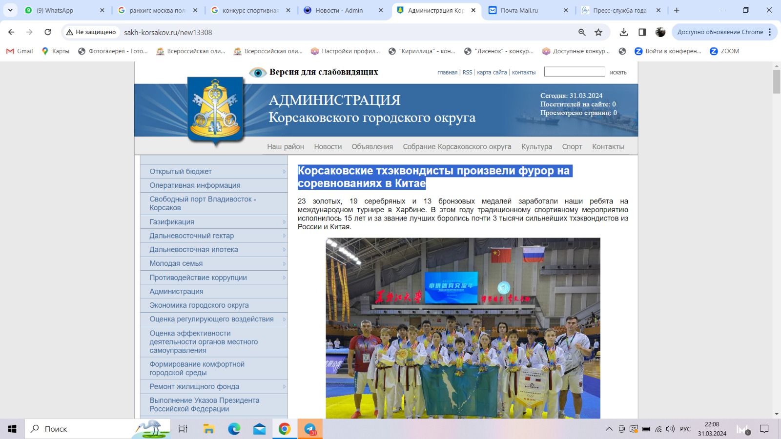 Черту в информационном фуроре тхэквондистов подвел мэр Корсаковского городского округа. 3 августа Александр Ивашов встретился со спортсменами их родителями и тренерами. И об этом тоже написали СМИ.