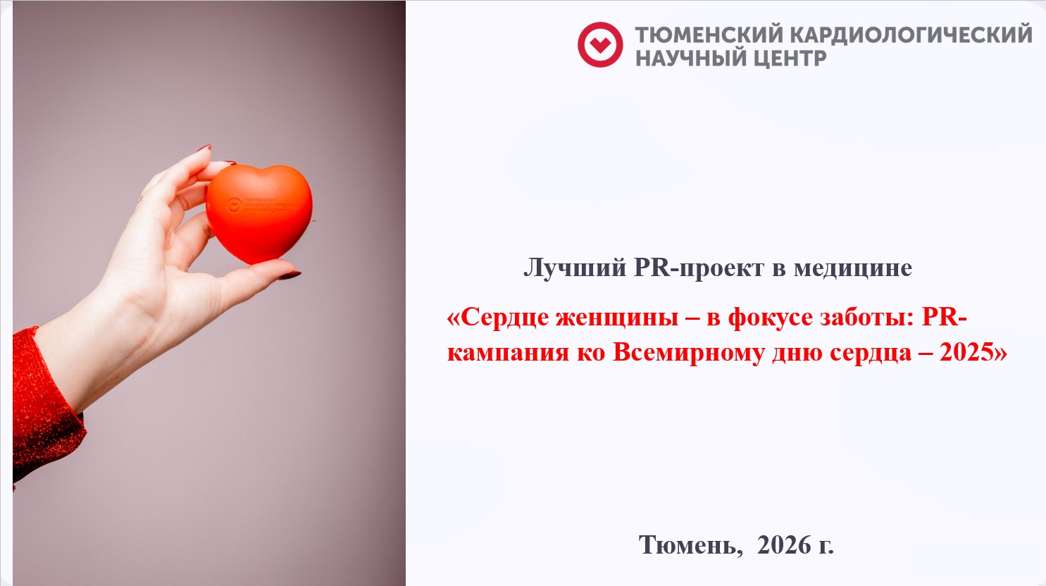 Повысить информированность женщин 45+ о рисках сердечно-сосудистых заболеваний, изменить отношение к профилактике, простроить эмоциональную и доверительную связь с медицинским учреждением, повысить узнаваемость Тюменского кардиоцентра как центра комплексного подхода к женскому здоровью.Результат проекта