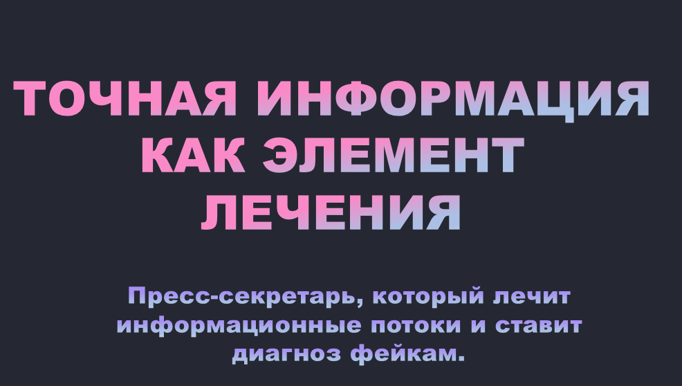 Ключевая идея: Проект направлен на признание и продвижение роли профессиональных коммуникаторов в здравоохранении, чья работа по достоверному, своевременному и доступному информированию пациентов, их семей и общества напрямую влияет на качество лечения, уровень доверия к системе здравоохранения и общественное здоровье. Итог проекта: Награждение победителя - это не только признание личных заслуг, но и мощный сигнал всей отрасли: профессиональная медицинская коммуникация - это инвестиция в здоровье нации, а пресс-секретарь в белом халате (пусть и виртуальном) - такой же важный участник лечебного процесса.