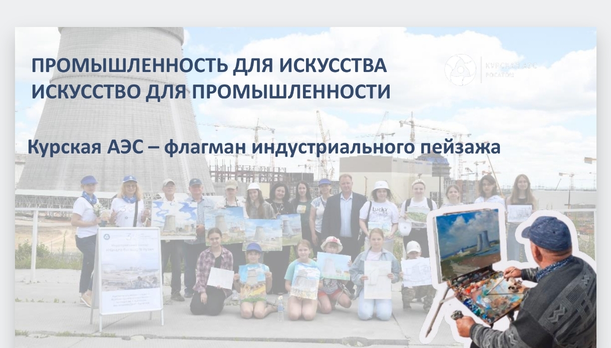 3. Провести пленэр в регионе расположения Курской АЭС. Показать атомный объект с натуры, где в картинах отражены монументальность действующих энергоблоков и масштабность строительной площадки с энергоблоками типа ВВЭР-ТОИ.
