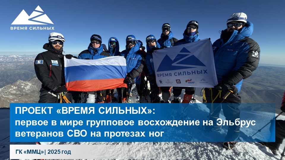 ГК «ММЦ» и компания «Бионика 2.0» реализовали уникальный проект под девизом «Время сильных». В июле 2025 года впервые в мировой истории состоялось групповое восхождение на Эльбрус шести ветеранов СВО на протезах ног. Инициатива получила поддержку Государственного фонда «Защитники Отечества» и АО «КАВКАЗ.РФ». Медиаоператором проекта выступил МИЦ «Известия».