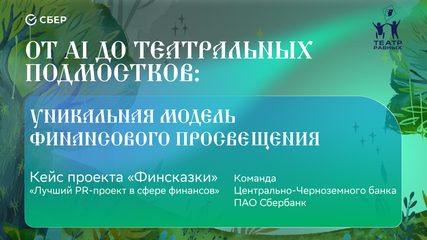 1) «Киберсказки для детей». Диджитал-часть проекта. Нейросеть GigaChat создала серию сказок о финансовой грамотности и безопасности в сети. Пять аудиосказок, записанных артистами инклюзивного «Театра равных» в студии Сбера, были выпущены в формате подкаста на стриминговом сервисе «Звук».
