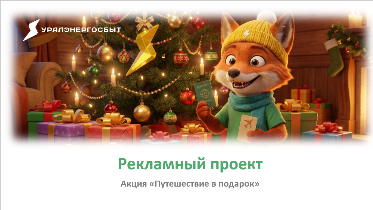 В период с 1 ноября по 31 декабря 2025 года клиентам «Уралэнергосбыта» и «УСТЭК-Челябинск» предлагалось оплатить все начисления за электроэнергию и тепло, чтобы стать участниками розыгрыша. Призовой фонд включал 2 главных сертификата на путешествие (номиналом 100 000 руб. каждый) и 60 поощрительных сертификатов на оплату электроэнергии (по 3 000 руб.). Для охвата целевой аудитории была задействована обширная медиамикс: наружная реклама (медиаэкраны, лифты, транспорт), digital-инструменты (таргетинг в VK и Telegram, контекст в Яндексе), PR в региональных СМИ, а также собственные каналы компании (квитанции, сайт, соцсети). Розыгрыш проводился открыто с помощью генератора случайных чисел в прямом эфире ВКонтакте, что обеспечило доверие участников.