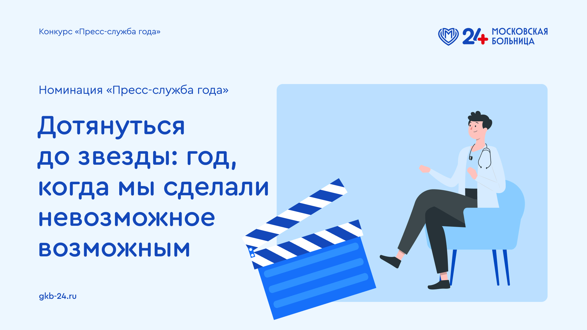 24 Московская больница стала трендсеттером среди московских больниц. Коллеги перенимают наш опыт. Нас приглашают выступать на отраслевых мероприятиях. Наш Telegram читают другие стационары, наши сотрудники и пациенты, конечно. После наших побед больницы активнее участвуют в премиях.