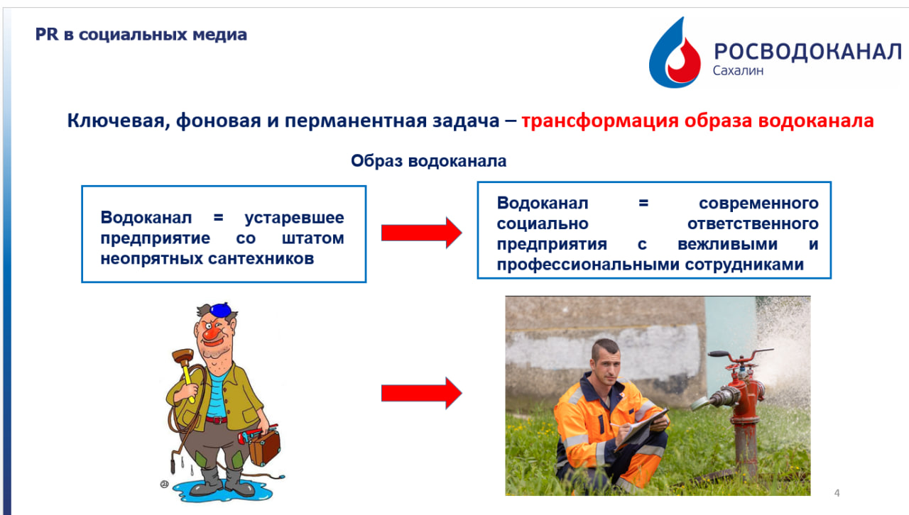 Задача официального телеграм-канала "РВК-Сахалин" (водоканал) - увеличить лояльность населения к предприятию. В 2022 году на условиях концессионного соглашения функции поставщика услуг водоснабжения и водоотведения в Южно-Сахалинске взял на себя частный оператор. Безусловно, в первую очередь предприятие столкнулось с непониманием людей - как частный оператор сможет выполнять социально значимую функцию обеспечениz города водой? Особенно это было актуально с учетом того, что для всех горожан была очевидна упадническая ситуация в отрасли - процент износа труб был запредельным, на аварии долго не реагировали в связи с отсутствием техники и рабочих рук.Важно было с помощью близкого и понятного людям инструмента (ТГ-канал) объяснить населению, чем занимается компания и обозначить ее приоритет - прежде всего, это коммунальный комфорт горожан.