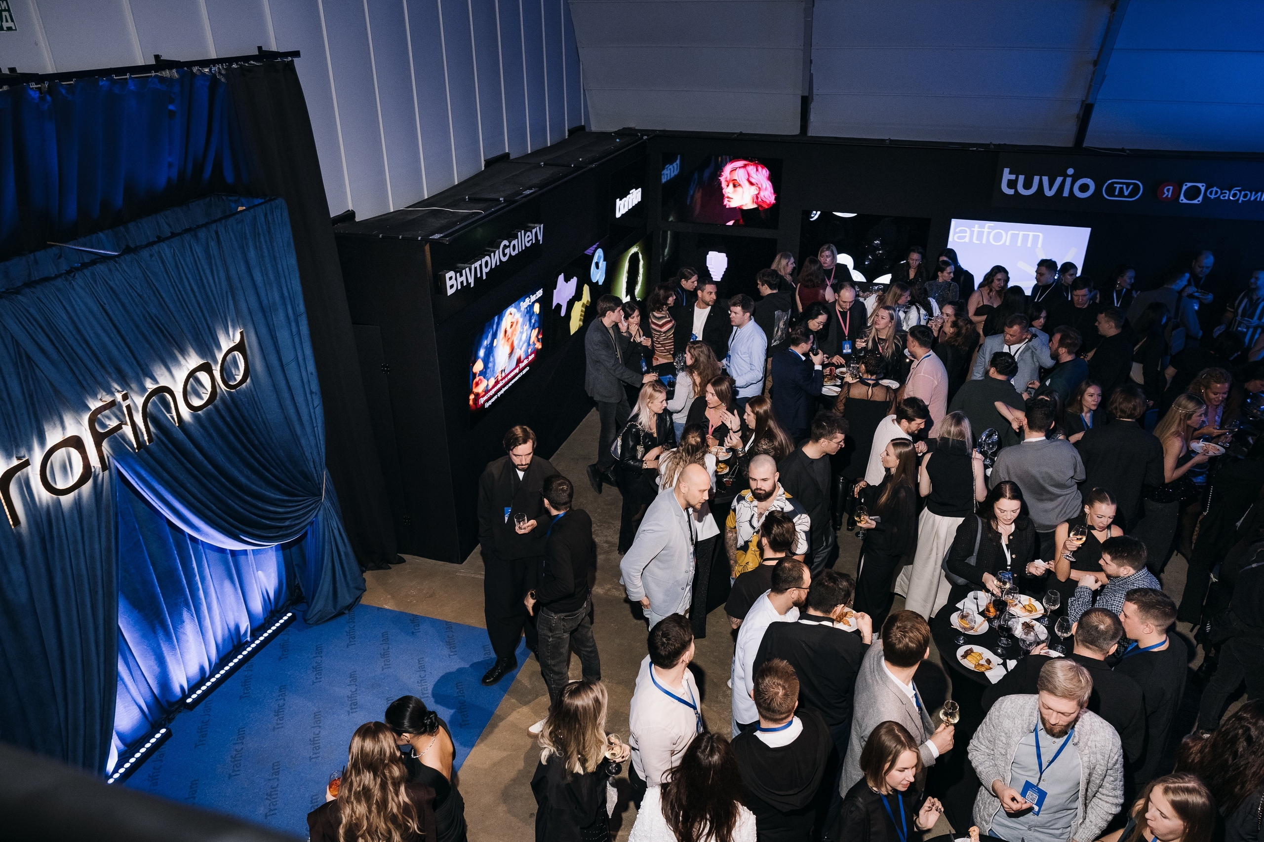 В зоне фуршета и нетворкинга были размещены цифровые экраны с визуальными сценариями, раскрывающими возможности платформы. Это обеспечило непрерывную коммуникацию с аудиторией и усилило эффект погружения.
