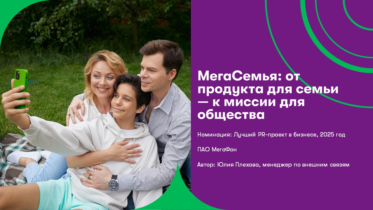 Закрепить лидерство МегаФона в сегменте услуг для многодетных семей и усилить репутацию бренда как социально-ответственного и клиентоориентированного оператора страны.Результат проекта
