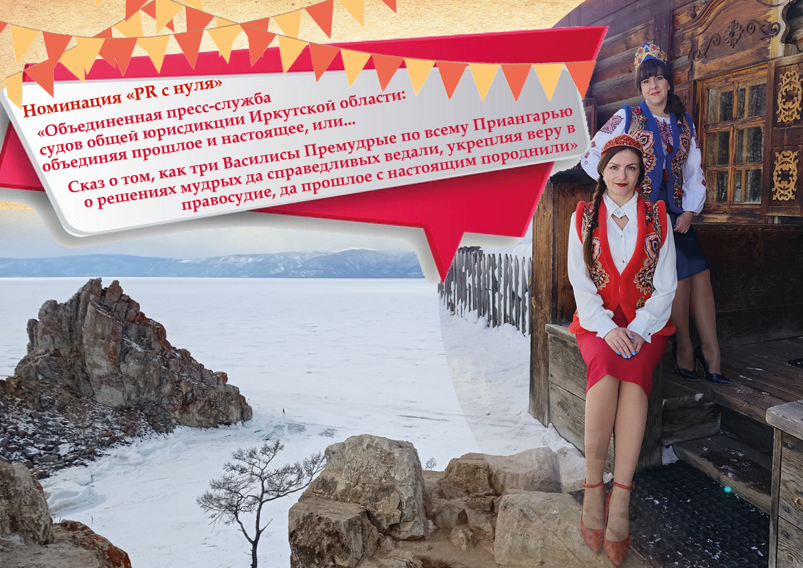 В некотором царстве, в Сибирском государстве, что зовется Иркутскою областью, земля необъятная – из края в край три дня скакать, а то и все десять на перекладных. Реки там глубокие, тайга дремучая, а люди живут работящие, справедливость любящие. И стоит на земле Сибирской вотчина праведная – суды, где царит порядок и уважение к делу праведному, охраняемые символом верховенства Закона – статуей богини правосудия с весами в руках. Ежедневно служители Фемиды разрешают споры о людских судьбах, вот только мало кто знает о работе их колоссальной. Молва людская из-за неведения информационного не в лучшем свете работу той вотчины представляла…Призадумались тогда мудрые правители судебные и решили создать дружину особенную, девичью, зоркую да голосистую – пресс-службу объединенную. Чтобы доверие меж народом и законом выстроить, а слово судебное чтобы до каждого дома долетало.