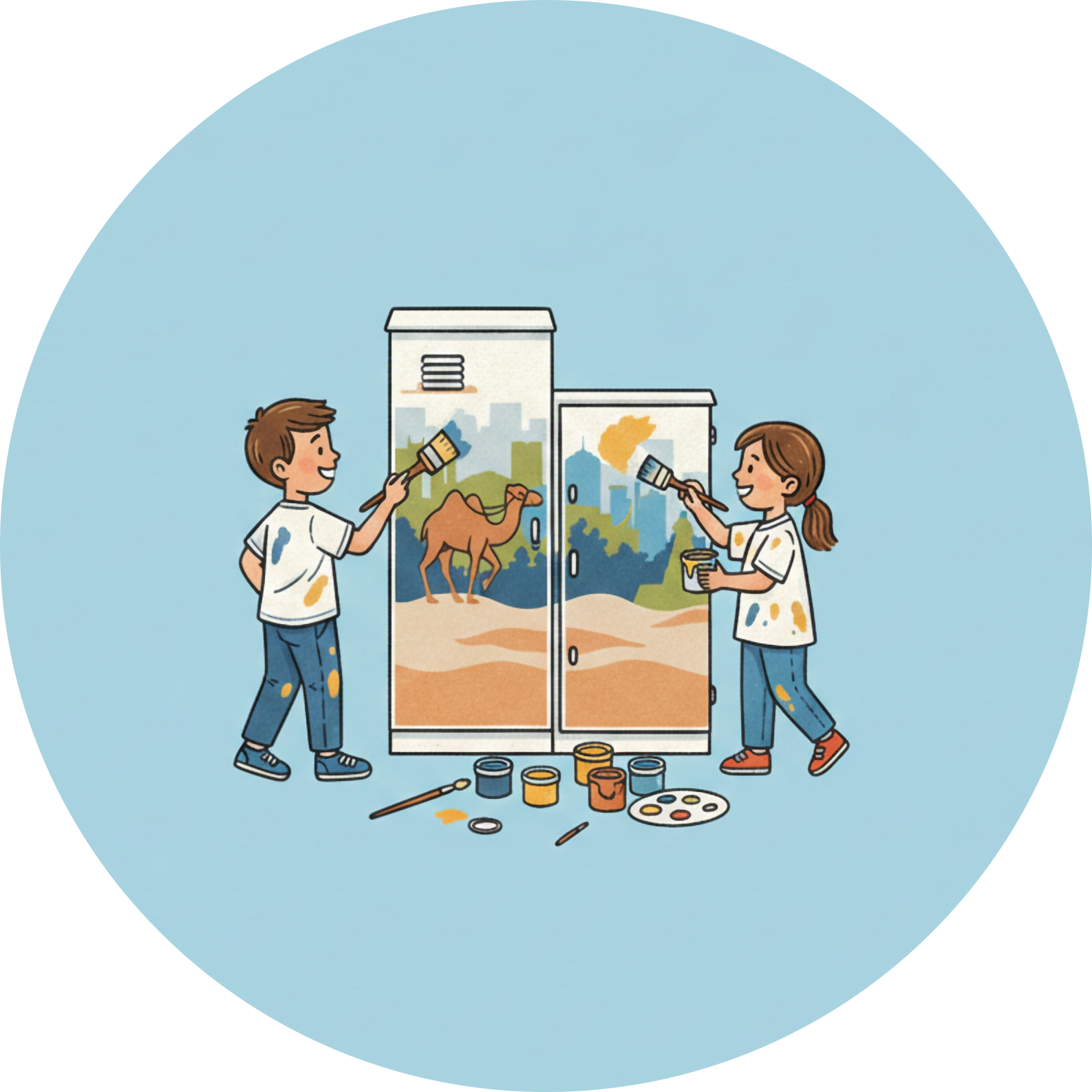 Вызов проекта — инженерные коммуникации сопровождают любой город, но в большинстве своем они выглядят неприглядно и даже портят облик города, когда постоянно заклеиваются рекламными афишами и объявлениями. Мы нашли решение — яркий проект, который преобразит шкафы, поможет проявить свой талант юным художникам и привлечь внимание к вопросу ответственного отношения к элементам городской среды.