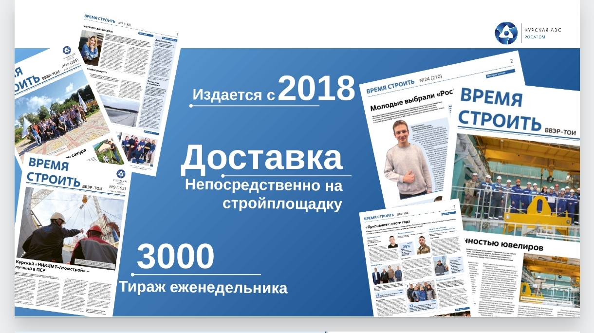 Несмотря на скромный тираж, у нашего вестника стройки хороший потенциал: наша аудитория - 11 000 человек и в запасе - пара энергоблоков, которые нам предстоит построить! Время строить ВВЭР-ТОИ!