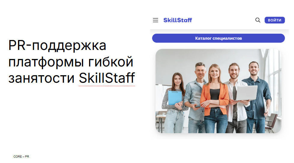 Широкое освещение лидерства в нише ИТ-аутстаффинга и закрепление нового позиционирования как платформы гибкой занятости.Результат проекта